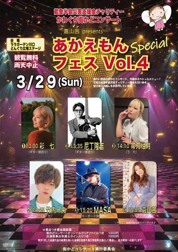 能登半島災害支援金チャリティー かわぐち街かどコンサート 嘉山茜 presents あかえもんフェスVol.4 PLACE/ララガーデン川口 観覧無料